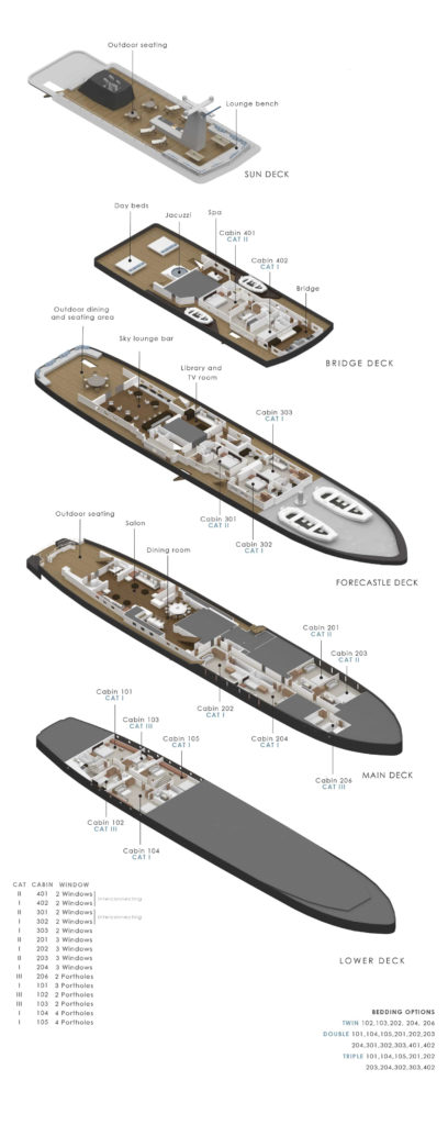 Uma reforma de 2019, supervisionada pelo designer holandês Cor D. Rover, trouxe o navio para as especificações internacionais de cruzeiro. Os hóspedes podem esperar adotar um senso distinto de história e evolução marítima quando pisarem neste navio de cruzeiro único.
