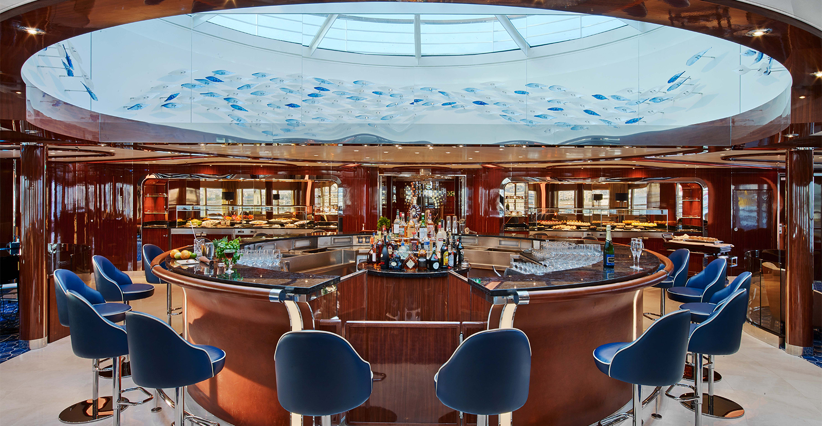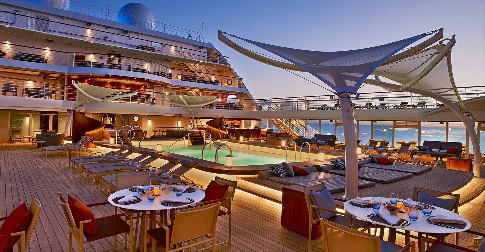 Os navios da Seabourn, com capacidade reduzida, proporcionam uma atmosfera íntima e acolhedora, ideal para socializar ou relaxar em total privacidade.