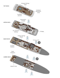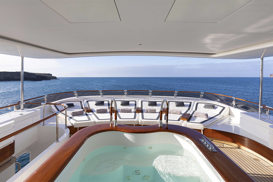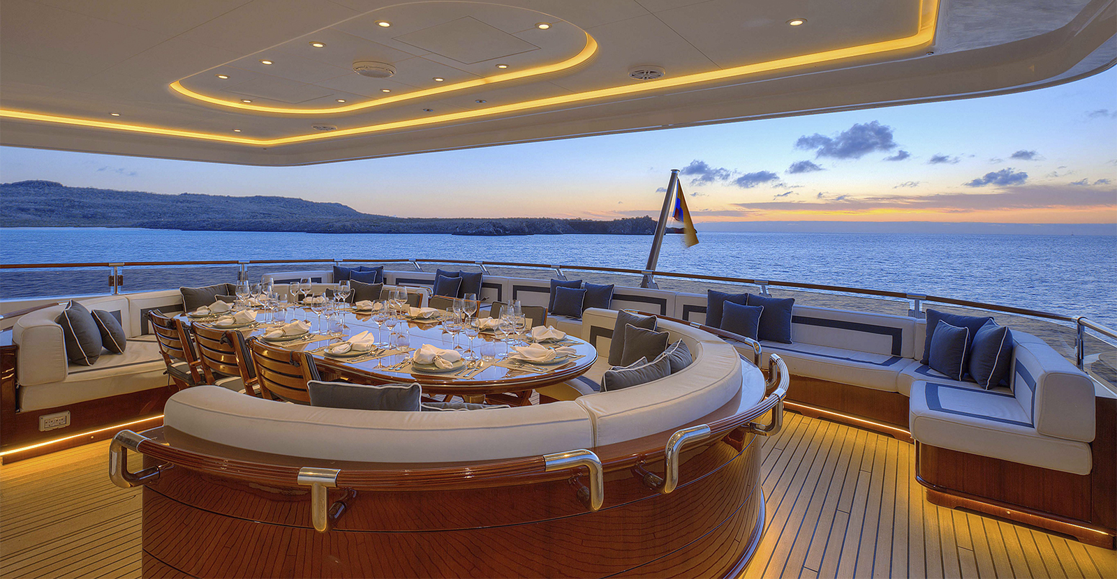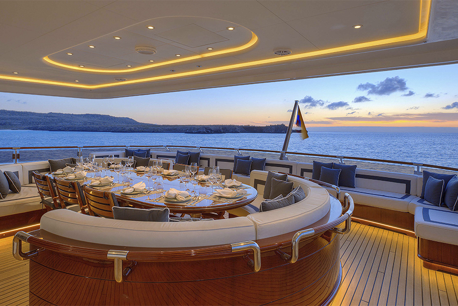 A bordo do italiano Aqua Mare, construído pela CRN Yacht, os hóspedes encontrarão sete grandes suítes projetadas por Zuretti, incluindo uma Owner’s Suite de 80 m², extravagantes espaços sociais internos e externos, acabamento elegante e atenção imaculada aos detalhes, tornando-o o primeiro de seu tipo na região, e o melhor retiro enquanto explora as dramáticas paisagens vulcânicas do Arquipélago de Galápagos. A exclusividade é combinada com o serviço mais personalizado proporcionado por dois guias naturalistas para 16 convidados, além da proporção individual de tripulação por hóspede mais exclusiva das ilhas.