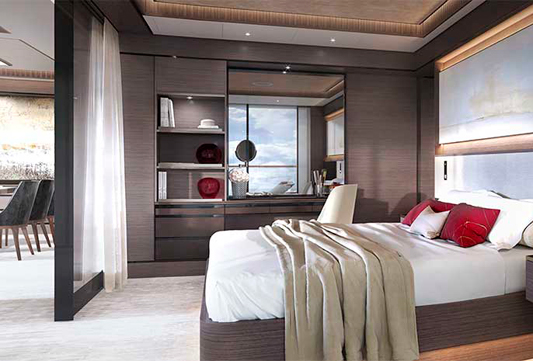 Com apenas 149 suítes, esse mega iate foi projetado para fundir a sensação residencial e espaçosa das propriedades do The Ritz-Carlton® com a qualidade do design inovador dos interiores de iates mais estilosos do mundo. Aqui, luxo e conforto são sinônimos; simplicidade e elegância vão lado a lado. Embarque a bordo do iate Evrima do The Ritz-Carlton Yacht, nas viagens em 2023 e 2024.