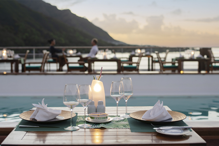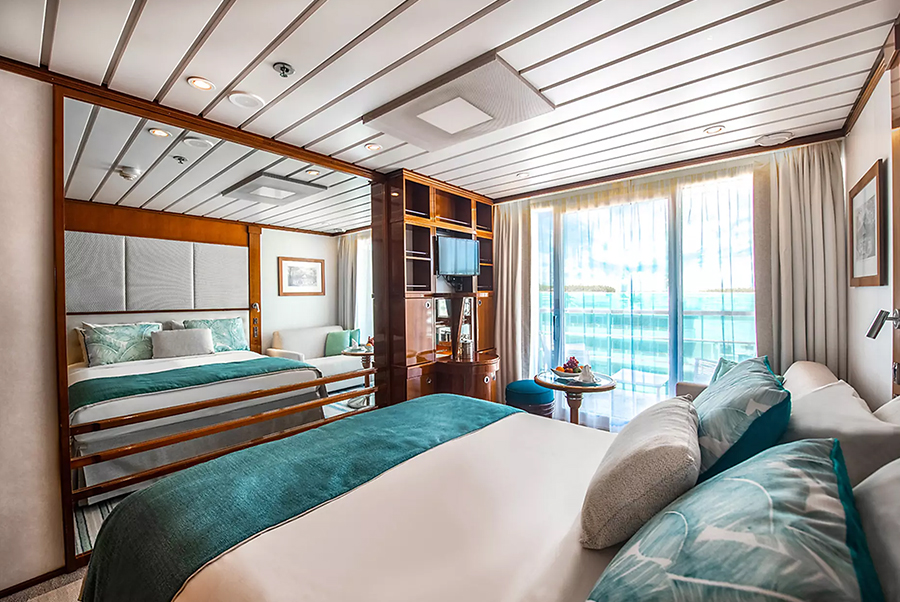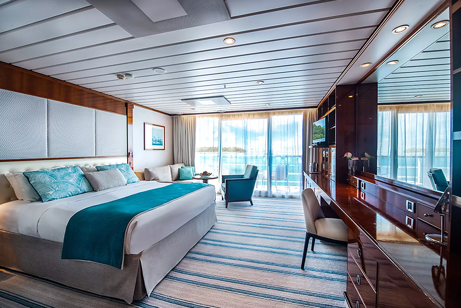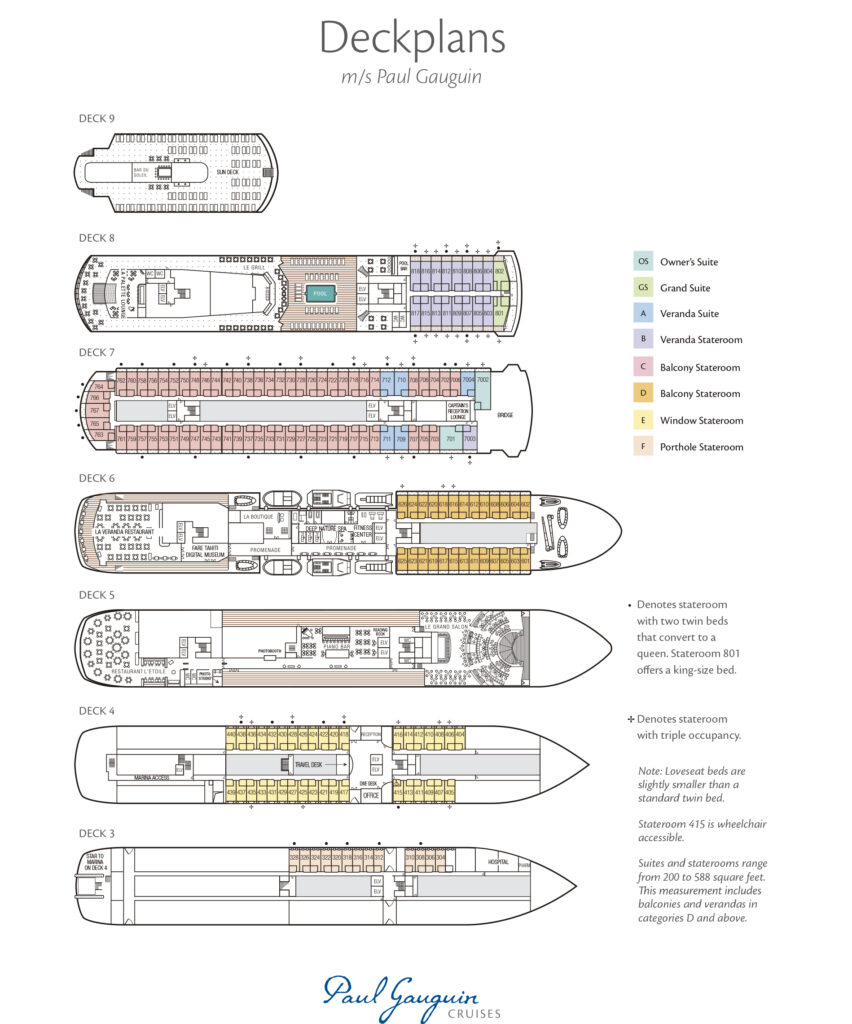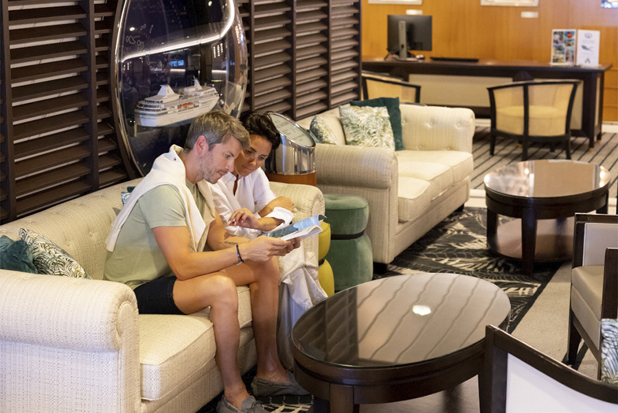 Suas 165 cabines e suítes têm vista externa e são decoradas com bom gosto. Materiais de qualidade como madeiras preciosas, gravuras antigas e detalhes em tiki homenageiam a cultura polinésia e contribuem para o encanto da vida a bordo, tornando cada viagem única.