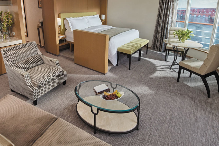 O Seven Seas Voyager® é projetado para uma experiência holística que aproveita ao máximo as tarifas com tudo incluído e todos os luxos que incluem. Aproveite todos os espaços, desde uma elegante sala de jantar até ao conforto tranquilo da sua varanda privada.