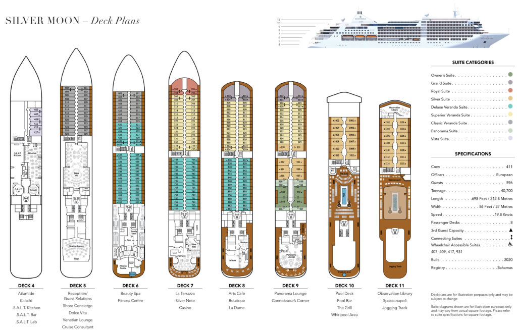 Baseando-se no sucesso fenomenal do Silver Muse, o Silver Moon, que foi inaugurado em 2020, e estabeleceu uma nova era para a Silversea. Com 40.700 toneladas de arqueação bruta e a capacidade de hospedar 596 passageiros a bordo, o Silver Moon mantém a intimidade de um pequeno navio com acomodações espaçosas, que são os traços distintivos da experiência Silversea. O Silver Moon também inclui o novo programa Sea And Land Taste (S.A.L.T.), um conceito culinário envolvente que permite que os hóspedes tenham diversas experiências gastronômicas enriquecedoras nos seus destinos.