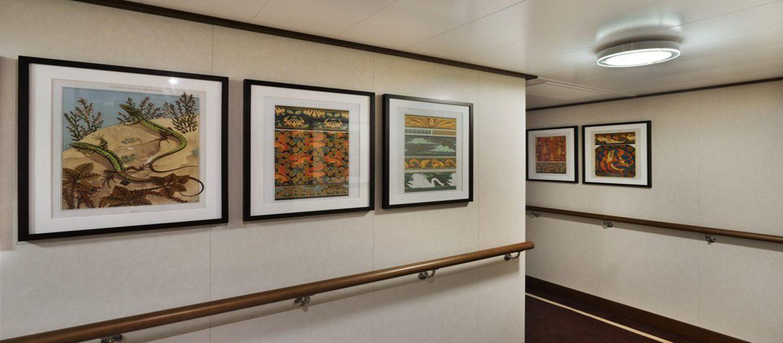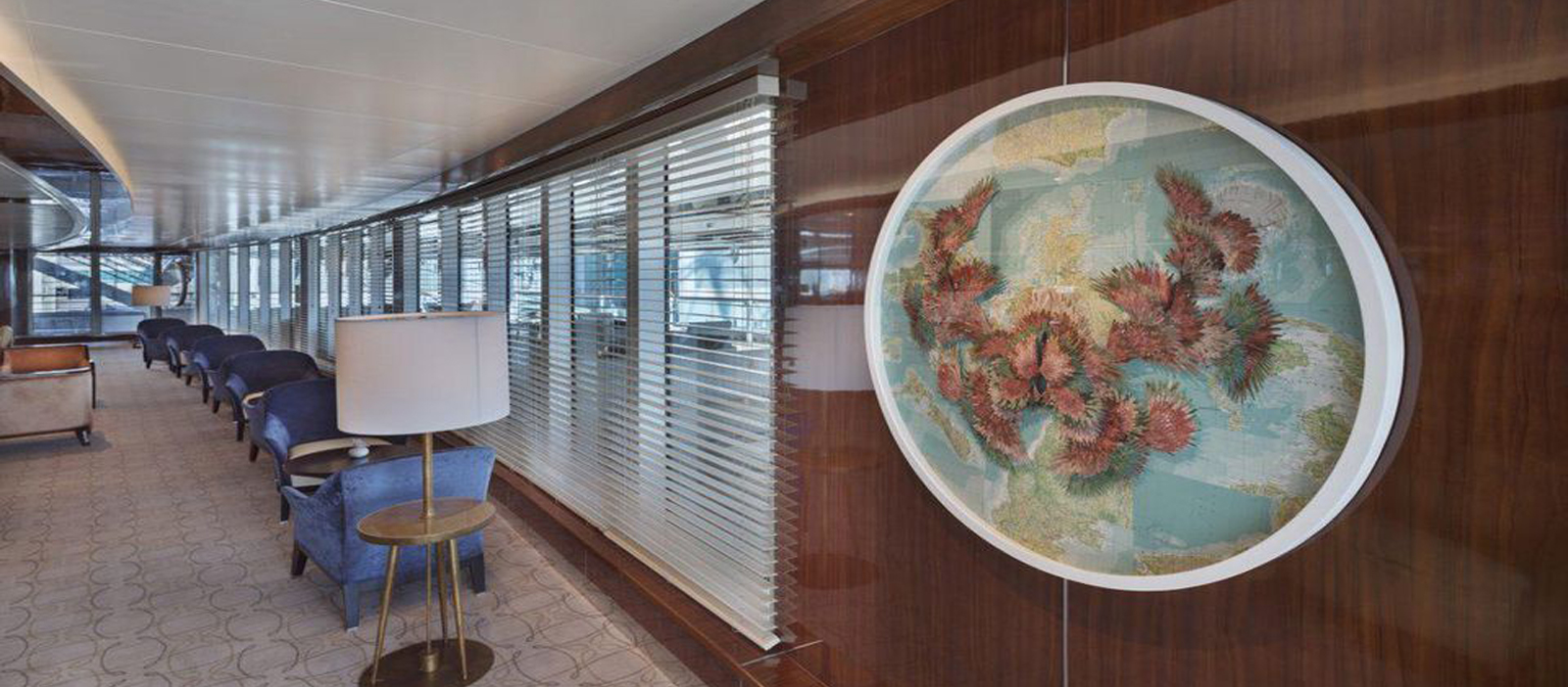 Mapas incomuns ganham a atenção dos olhos daqueles que caminham pelo Seabourn Square, principal área de convívio do navio, no déque 7. A cartografia estilizada com recortes de livros, atlas e fotografias em formato de pássaros, intitulada Migratory Species I, é assinada por Barbara Wildenboer. A Artlink interpreta que, “pelo processo de alteração de livros, a artista enfatiza o entendimento do observador sobre os termos abstratos da ciência por meio de metáforas e da dita autoridade do texto”.