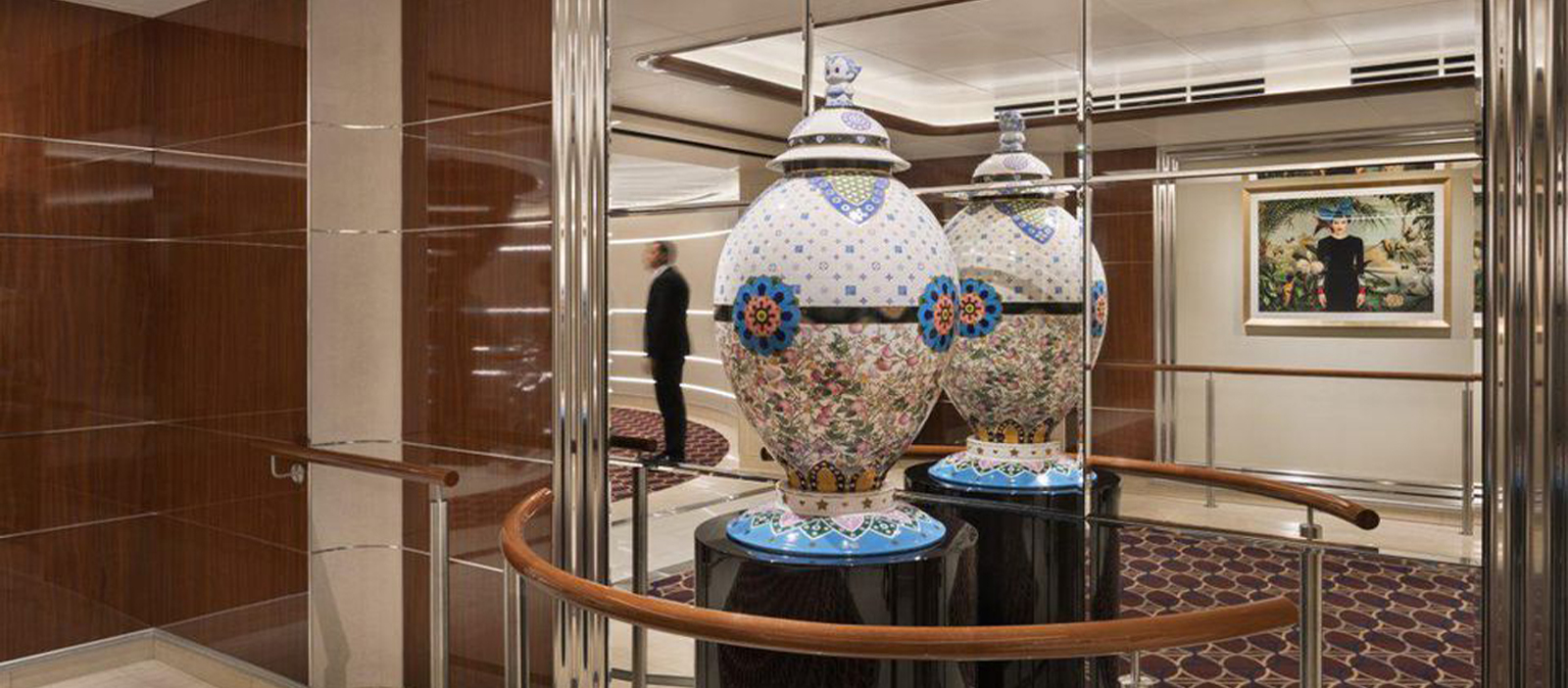 Com 12 déques em sua totalidade com bares, restaurantes, spa, cassino, halls, corredores e muitas dezenas de outros espaços, adornar um navio de cruzeiro de luxo não é das tarefas mais simples. Coube ao israelense Tal Danai, diretor da Artlink, empresa especializada em curadoria de arte, escolher artistas e obras para o Seabourn Ovation. O trabalho é realmente complexo, para se ter uma dimensão do desafio, a equipe de Danai buscou artistas em cinco continentes, selecionando 120 nomes que, juntos, disponibilizaram mais de 1,6 mil obras para o navio.